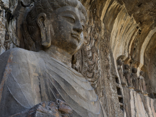 龍門石窟最大の仏像は「盧舎那大仏」です。盧舎那とはサンスクリット語で「智慧と光明があまねく行き渡る」という意味を持ちます。