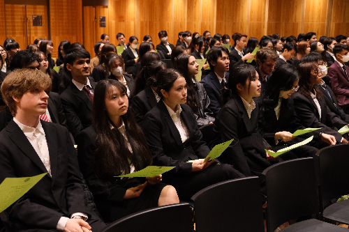 今年の入学式には、来賓として中国在日大使館からもご出席いただき、会場は一層厳かな雰囲気に包まれました。大使館の方から温かいご祝辞を頂き、新入生たちも背筋が伸びる思いで耳を傾けていました。国際的な視点からの励ましの言葉は、これから中国語を学び始める学生たちにとって、大きな励みになったことでしょう。