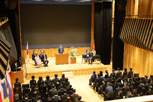 満開の桜がやさしく出迎えるキャンパスには、日本国内だけでなく、世界各国から集まった新入生たちが緊張した面持ちで講堂へと足を運んでいました。期待と不安が入り混じった表情からは、これから始まる新しい生活への気持ちが伝わってきます。