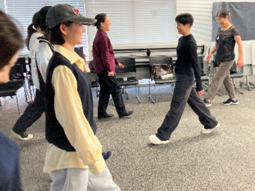 しかし、レッスンの甲斐あって、みなさんのウォ-キングが最後にはとてもきれいになってました。特に手前の三年生の方の背筋がとてもきれいですね!
