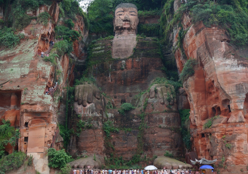 凌雲山にそびえる楽山大仏は、高さ71m。奈良の大仏の約5倍という圧倒的なスケールです。